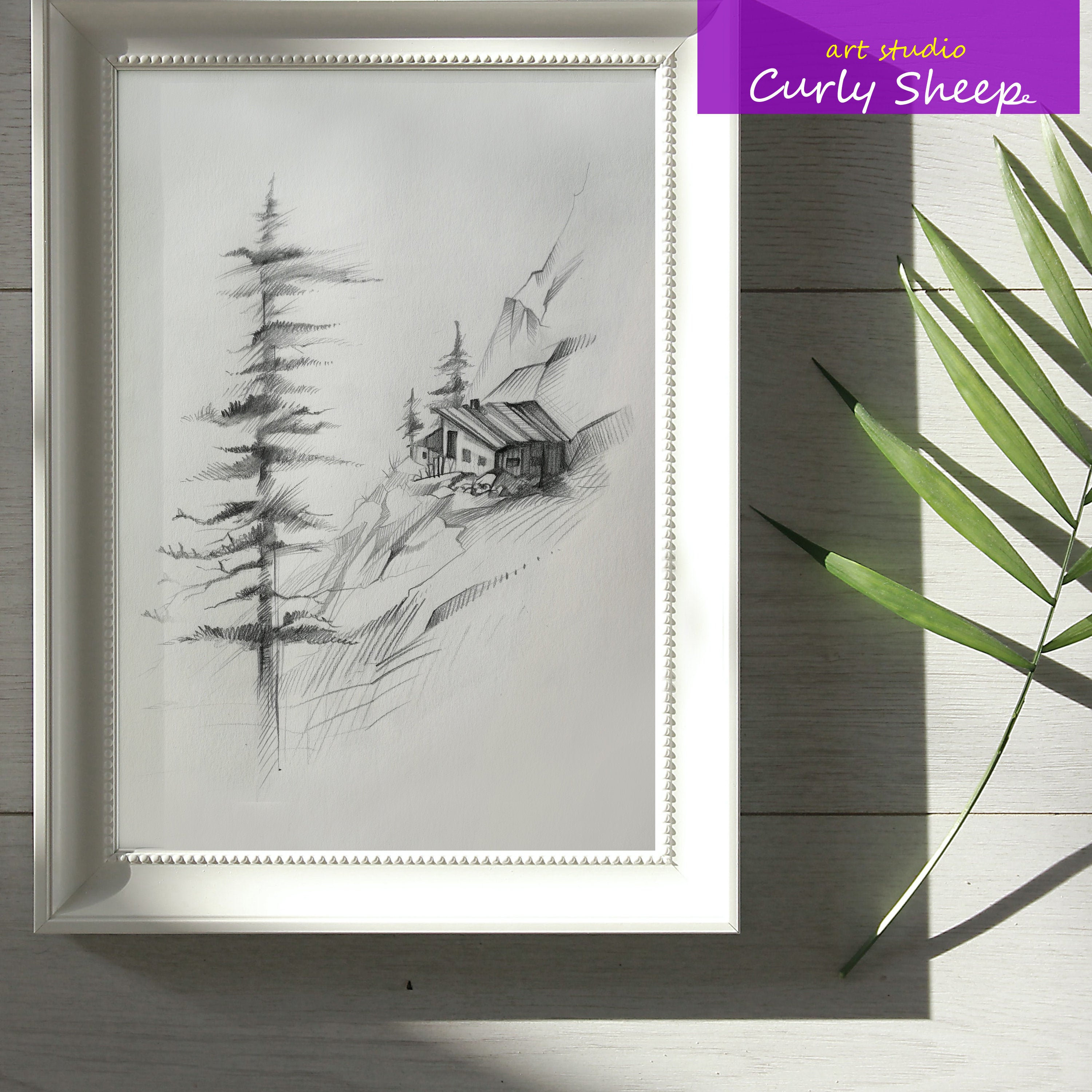 House Tree Pencil Drawing A4 House Pencil Sketch Etsy